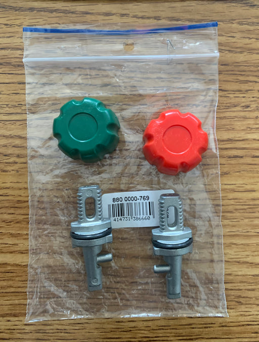 Includes 1 red knob, 1 green knob, & 2 zinc terminals