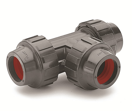 Compression Fittings are manufactured from high performance thermoplastic materials which resist corrosion and offer impact, UV, and chemical resistance. They are pressure rated to 230 psi to meet the needs of high-pressure systems and are built for a 50+ year life to ensure longevity and durability under the toughest conditions. They are available in ½ " to 4" sizes.